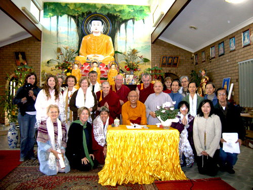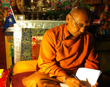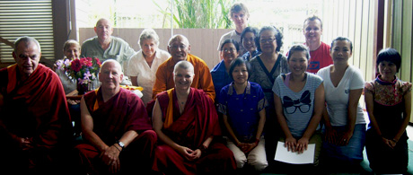 Geshe la arrived on Australian shores in 1995 with a wish to teach Buddhism. Before coming here he consulted with His Holiness the Dalai Lama and his teachers. They gave him their blessings and advice. Geshe-la began his teachings in Northern NSW Australia in 1995. His wish was to establish a Buddhist Centre where monks, nuns and lay students could take refuge in Buddha's teachings. A centre where students can listen, contemplate and meditate on the Dharma. Geshe La has dedicated himself to helping all please enjoy this reminder of the 18 years of service he has extended to his western students. Even though some of the photo are not so clear we hope you enjoy and wish Geshe La a long life fruitful students and to continue teaching us long into the future thank you all for your support and above all thank you Geshe La. |